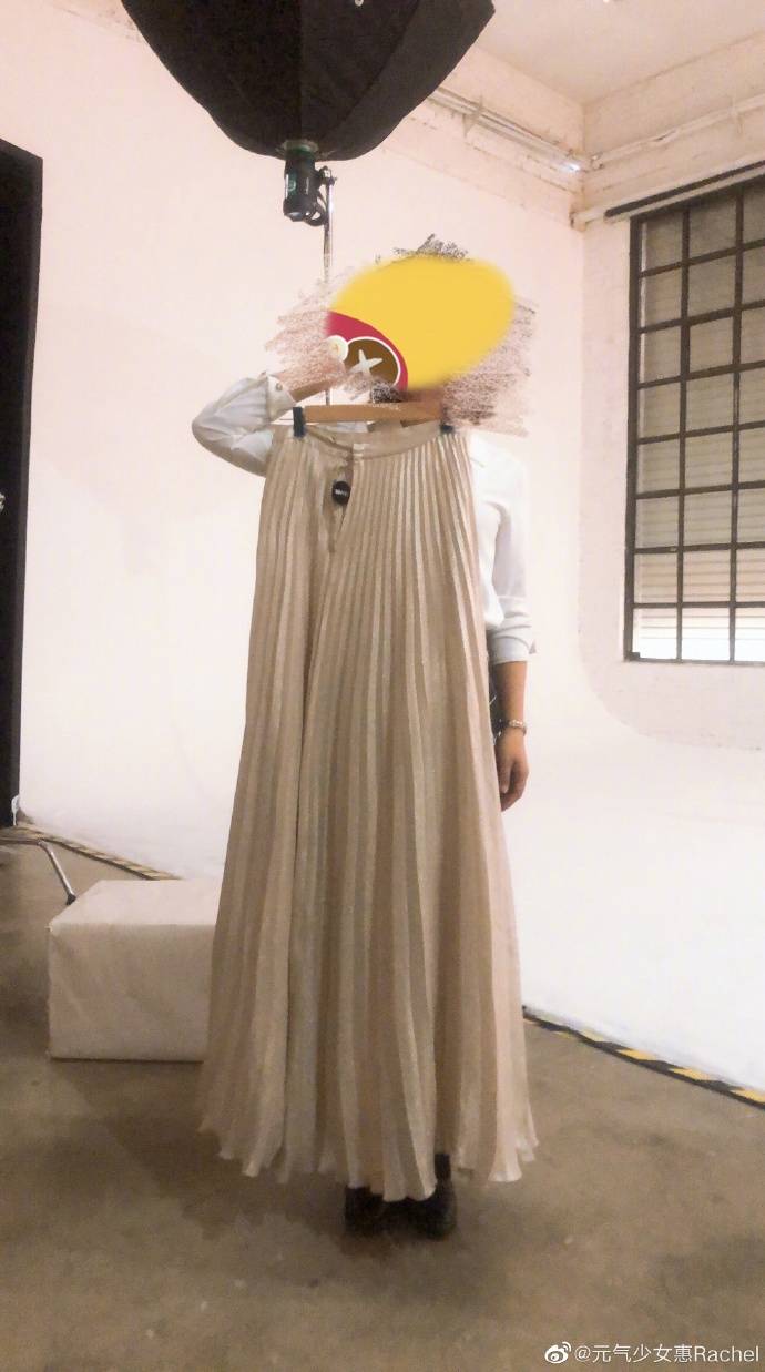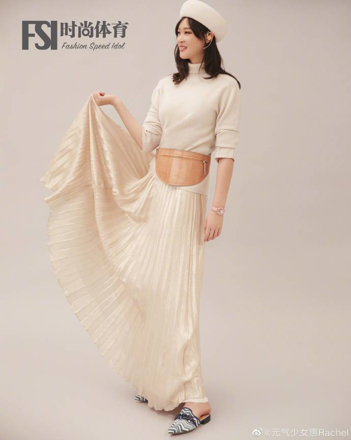 慧若琪优雅的褶裥长裙,搭配白色毛衣和羊毛帽,显得温柔而自信。她还公布了她穿的裙子与员工的对比。这条裙子的长度几乎和手杖一样长。