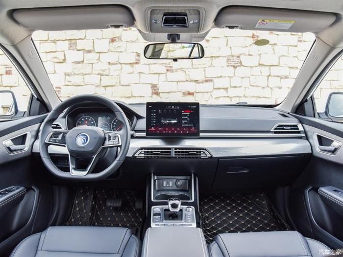 在内饰方面,新车的中控台采用了比亚迪家族流行的T型设计。最引人注目的室内装饰是10.1英寸的可旋转中控台,配有DiLink互联网连接系统。新车的中控台下方设计了一个杯架和储物格,空间宽敞,并配有一个精致小巧的电子止动器,镀铬装饰条贯穿中控台。然而,我们可以看到,汽车没有配备目前流行的全液晶表,这是有点遗憾。