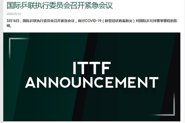 国际乒乓球联合会(ITTF)再次宣布,它将在4月底之前暂停所有ITTF比赛和活动,当然包括4月在泰国举行的奥运会亚洲预选赛。国际乒乓球联合会表示:“解决方案可能包括在世界单打资格赛或奥运会前比赛中增加洲际奥运会资格赛,或者根据当时的世界排名(具体取决于何时确定世界排名)来确定资格。”