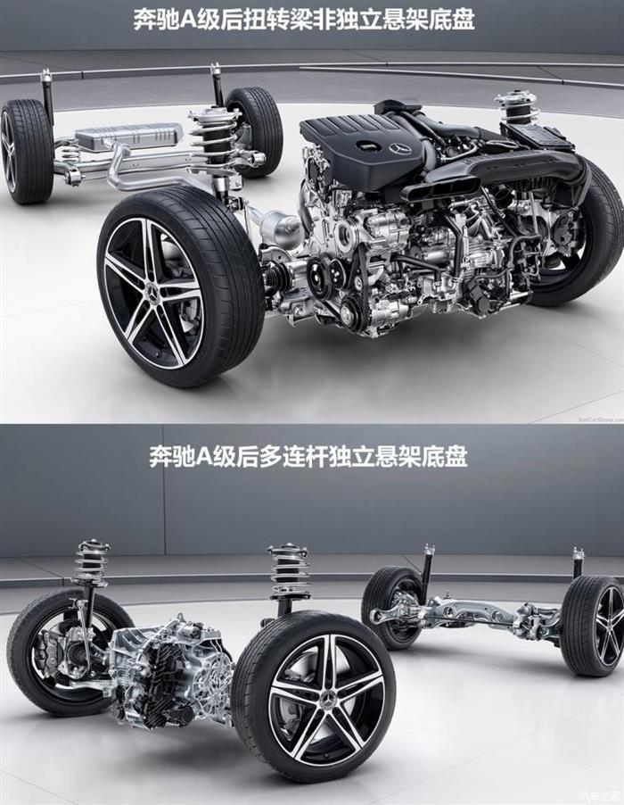 梅赛德斯-奔驰GLB采用麦弗逊前悬架,下控制臂、转向节和一些转向杆由铝合金制成,体现了梅赛德斯的“贵族气息”。