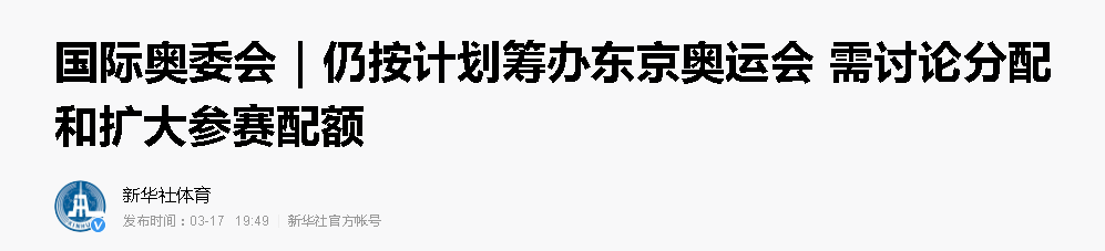 3月17日凌晨,据日本《体育杂志》报道,由于世界疫情开始变得严重,东京奥组委的几位负责人同意了其负责人高提出的将东京奥运会延期两年的建议。东京奥组委将于3月30日讨论这个问题。讨论的核心是在7月24日奥运会顺利开幕的前提下,是否实施替代计划。消息传出后,许多国家的媒体认为东京奥运会将延期,2022年将是奥运会的新的一年,但是新的消息在晚上传来。