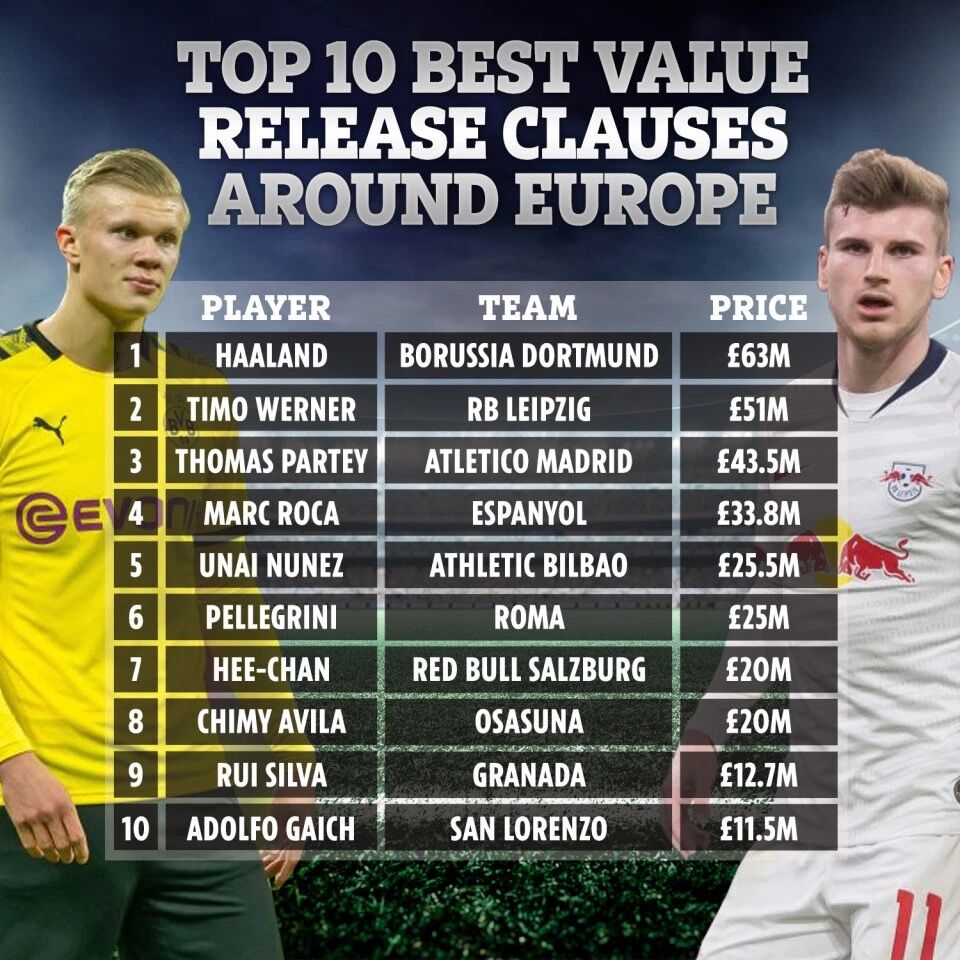 1.哈兰(多特蒙德,终止:6300万英镑)