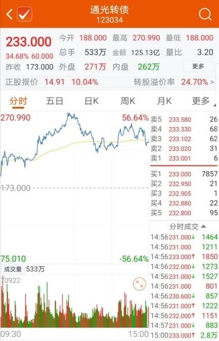 然而,对于投资者来说,可转换债券的特征T+0提供了一个在一天内收盘的盈利模式。以今天的模制可转换债券为例,以141元的开盘价买入,以260元的最高价格卖出,将带来接近90%的单一利润。如果盘中出现更多反转,利润可能会更高。