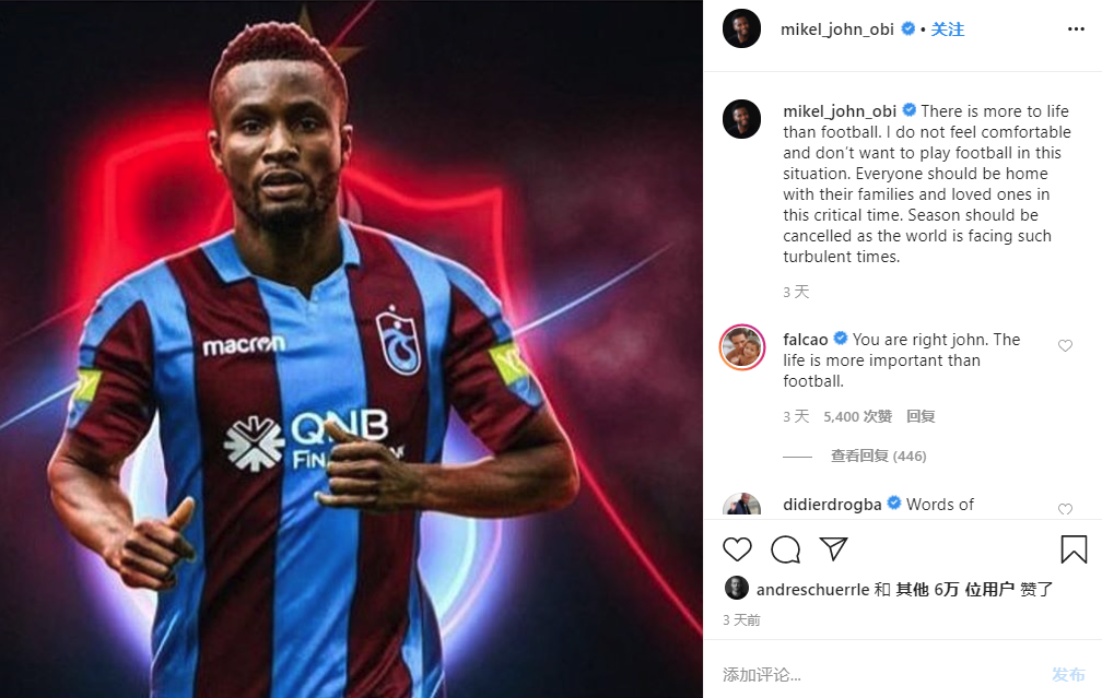 随着疫情在土耳其蔓延,米克尔毅然放弃了足球。“生活比足球重要得多。土耳其超级联赛仍在继续。我觉得很不舒服。在这种情况下,我不想踢足球。”米克尔写道。