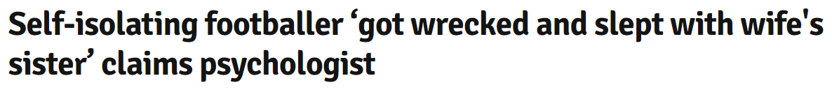 《每日星报》最近采访了顶级心理学家史蒂夫·波普。史蒂夫·波普说,由于赛季的突然中断和球员的孤立,许多球员在私人生活中遭受抑郁和困惑。几天前,他还接到了一名球员的电话,说他和妻子的妹妹睡过。