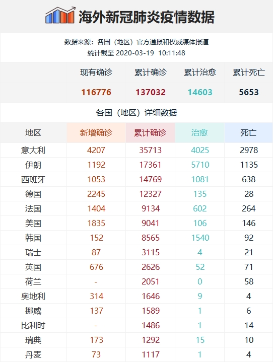 4207个新病例!意大利累积35,713例确诊的新皇冠肺炎 发布时间:2020-03-19