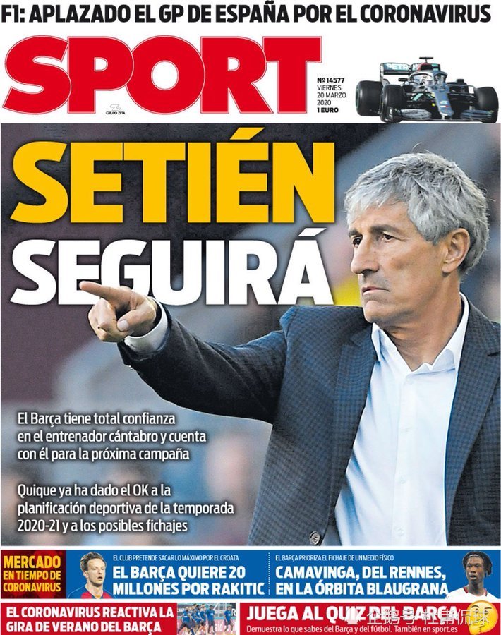 北京时间3月20日,西方媒体《体育日报》在封面上报道称,巴塞罗那队主教练塞蒂安不会辞职。他将执教球队至少到2021年夏天,也就是下赛季结束。同时,正如所指出的,皇马教练齐达内也将继续执教银河战舰。他还会至少呆到2021年夏天,也就是说,这两个西班牙巨人很少同步。这两个团队在这个阶段选择了同步。